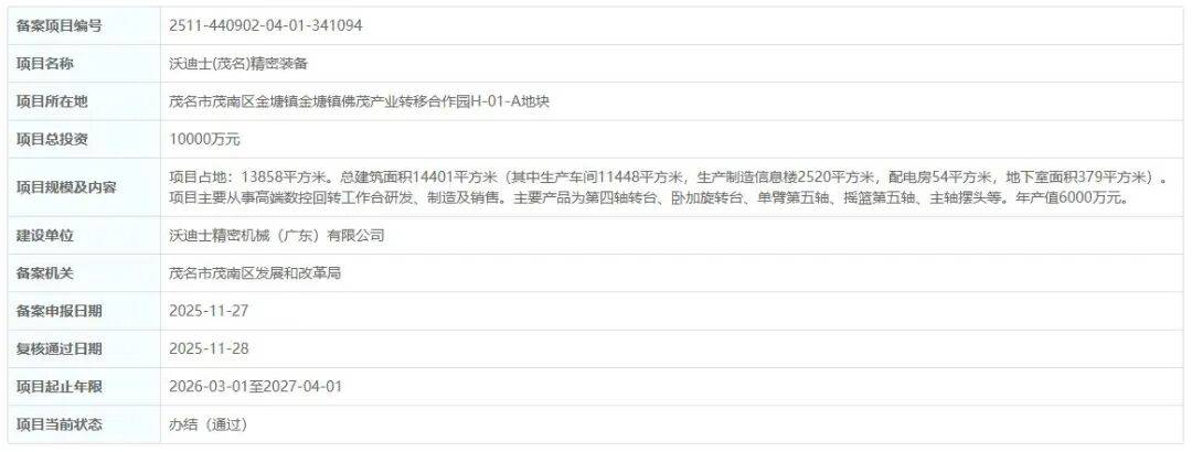 项目规模及内容:项目占地13858平方米。总建建面积14401平方米(此中出产车间11448平方米,出产制制消息楼2520平方米,配电房54平方米,制制及发卖。次要产物为第四轴转台、卧加扭转台、单臂第五轴、摇篮第五轴、从轴摆甲等。年产值6000万元。
